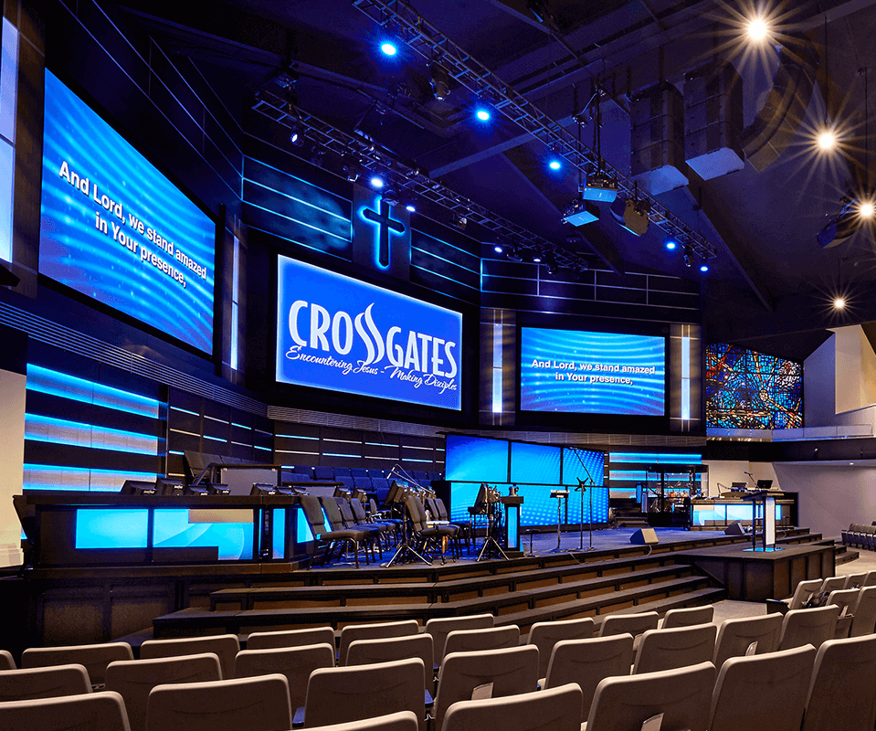 該工程采用了一塊強(qiáng)力巨彩8.6㎡的Q1.2大屏,左右兩邊各配置了一只EAJAX 采用DANTE接口的雙6寸POE音箱,整... -